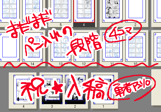 4コマは下書きまで完了してるので、あとはひたすらペン入れ&ベタ作業です。
